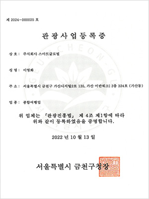 문화관광부 종합여행사 허가업 등록 : 22년 3월